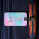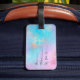 Vackert och snyggt bagagemärke med modernt handskrivet skript, faux ro guld och färgstarkt struktur.