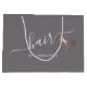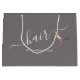 Modern design och elegant för hårstilister med sax för faux ro guld, elegant calligraphy font och grått bakgrund.