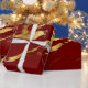 Elegantens moderna snyggt guld och rött marmor presentpapper