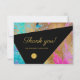 Ett företag som arbetar med lyxfrågor i klass tackar dig för att du har ett platt anteckningskort i pulserande rosa, blå och svart färg-palett med abstrakt-penseldrag och faux guld modern contemporary-skript som är fullt redigerbart för typografi. ++++++++ Anpassa texten och namnteckning på framsidan och baksidan! ++++++++++++++++++ Du kan ladda upp logotypen genom att byta ut guld-cirkeln på framsidan.