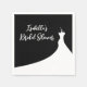 Ljusvit text och en elegant bröllop-klänning på en klassisk svart bakgrundsaccent för den här möhippan napkin, skapar perfekt för en svartvit, Halloween eller gotisk tematdusch. Den koordinerar perfekt med Elegant Möhippa Collection i svart.