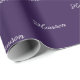 Elegant anpassningsbar-skript namn, text, monogram mönster Birthday Gift Wrapping Papper. vit text, mörk violet lila bakgrund.