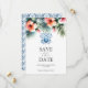 Elegantens Rosa och blå Blommigt Spara datumkort Datumet