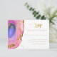 Dessa eleganter, moderna svarskort i bröllop har trendigets rosa och geodetiska stenar med faux guld handskript och accenter.