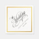 Ett vackert elegant bröllop-napkin med text för calligraphy-skript accents med ett stort guld gräns som omger texten. Det enkla, smakfulla stil fungerar bra för bröllop under alla säsonger.