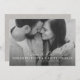 nyheterna om din förlovning och det kommande giftermål med det här enfoto-vågrät spara datumkortet med en vit elegant som sitter vid grund i ett vågrät-foto. Baksidan är en neutralt som skuggas med ett subtilt rutnät mönster. Du kan justera färg genom att klicka på "Anpassa".