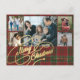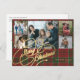 Rustic elegant snyggt God jul faux guld klassiskt kalligrafi-skript fem familjefärgade foton röda och grönt plaid tartan helgdag-vykort med anpassningsbarnas personlig på båda sidor.