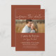 Elegantens skript Rustic Terracotta sparar Monogram-inbjudan till datum. Det här fotot inbjudan är perfekten med enkla eleganta och minimalistiska designfunktioner med ett foto för att hedra minnet av din speciella dag. Monogram på baksidan och minimal terracotta-design för din bröllop, årsdag eller speciella tilldragelse.