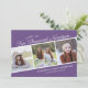 I inbjudan till studenten finns tre kvadratiska foto ramar accenterade med elegant skripttext på lila. Detta är perfekt för twillingar, triplet eller vänner som firar sina studenten tillsammans.