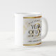 Fira 3:e läderårsdagen i bröllop med ett par av dessa snyggt jätten kaffe koppar! Elegant med guld-dammad hexagonkonfetti på en lyxvit läderbakgrund som gränsar till guld-folie tillför en minnesvärd beröring för detta särskilda tillfälle och milstolpe. Anpassa med parets namn, data av giftermål och/eller gratulationsbudskap. Omvänd visar identisk design. Design © W.H. Sim, Med reserverade Höger. Se mer på zazzle.com/expressionsoccasions