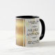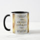 Fira 3:e läderårsdagen i bröllop med ett par snyggt mugg! Svart elegant med guld-dammad sexkantig konfetti på en luxuriös vit läderbakgrund som gränsar till guld-folie tillför en minnesvärd beröring för detta särskilda tillfälle och milstolpe. Anpassa med parets namn, data i giftermål och gratulationer. Design © W.H. Sim, Med reserverade Höger. Se mer på zazzle.com/expressionsoccasions