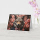 En varg för elegant i kostym med rosa blommor i tillfällen-hälsningskort