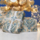 Vackert vattenfärdigt blommönster i vitt, beige och dammblått, perfekt för inslagning av vackra gåvor.