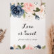 I elegant är vintern blommigt kärlek ett vackert tecken perfekt för ett modernt bröllop eller en modern möhippa. Utformningen har vackra, handmålade mörk blått, blå, marinerade, rosa, blommor, blommor från guld och blad av grönt, buntade i elegant bouquets.