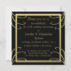 Denna eleganta inbjudan--för närvarande ställa in för att vara en årsdaginbjudan men kan användas för mest några sorterar av händelse--presenterar en svart bakgrund, en guld- ram med virvlar runt, båda med en präglad look och guld- bokstäver.
