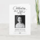 Eleganten vikta begravnings- programet i svartvitt, med calligraphy skrivar swirly. På täcka, ett foto av din älskade tillsammans med deras namn och år bo. Insida kan du skriva dödsrunan och programmera. På baksidaen kan du tillfoga tack till personer.