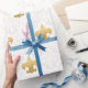 Elegantt och stilfullt guld och vit fleur de lis som slår in papper. Presenterar en vitbakgrundsfärg och ett guld fleur de lis all över mönster med spridda fasta guld- kulöra fleur de lis. Gillar inte viten? Ändra bakgrundsfärgen till spelar ingen roll dig wishen! Finna koordinerande produkter i vårt Zazzle lager!