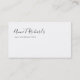 Ditt namn skrivev ut i en handskriven stilsortsstil, med yrke och extra information om kontakt på en elegant vitvisitkort