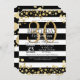 Eleganta moderna svartvita randar med fauxguld målar splatters, födelsedagsfest inbjudan. Mycket klassiker och sofistikerad design för den flott födelsedagdamen. Personifiera med din egna meddelande och monogram på baksidaen. All fototryckdesign