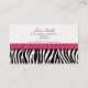 Elegant modern flott visitkort för zebra tryckmodeshock rosa. Också tillgängligt i rödbrunt. Typsnitt, stilsortsformatet, stilsortsfärg och stilsorten placerar kan skräddarsy för att passa din stil.