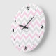 Elegantt rosa-, grå färg- och vitsparremönster stor klocka