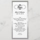 Long och den magra bröllopbordmenyn som göras i vit, med ett silver, tona ramen runt om yttersidan, och en vintage tittar svart virvlar runt textområde, upptill. Personifiera alla text för att passa din meny för bröllopmottagandet. Älskvärt tillägg till ditt bröllopmottagande.