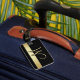 Varje bagage behöver en härlig märkre! Den eleganta och unika professionellen/det utöva monogrammed initiala brev tonar itu. Bakgrundsfärg är svart med guld omkullkastar randen. Redigerbara mallmärkre - tillfoga monogramen.