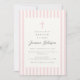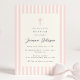 Lyxig och elegant dopinbjudan för flickor med ljust rosa och vita ränder och ett enkelt kors på en elfenbensvit bakgrund. För en premiumstrukturerad look välj pappperstypen "Laid".