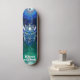 Dd varumärke skateboard, med grafisk konst av Ett metalliskt blått robot huvud med elektriska strömmar som går upp och ner från det. Anpassad text, längst ner på tavlan, är redo att anpassas för att läsa vad du vill.