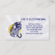 visitkortvisningillustrationen av en elektrikerarbetare som bär en elkraft, pluggar fastställd insida cirklar gjort i retro stil. Ideal för elektriker, linjearbetare, fodrar arbetare, elektriska leverantörer och företaget.