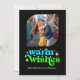 Ge värme och glädje till dina höst- och julhälsningar med detta djärva och lekfulla julkort med ”varma önskningar”. Med en retroinspirerad font, färgglada accenter och utrymme för din favoritbild är denna moderna design perfekt för familjer, par och vänner som älskar att fira säsongen med nostalgisk stil. Anpassa med ditt foto och meddelande för ett festligt kort som är lika roligt och oförglömligt som din höst- och julhelg. Om det finns en färgkombination du har i åtanke som inte visas här, skicka mig ett meddelande så skapar jag ditt eget anpassade kort!