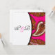 Denna rena vita och elektriska Fuscia Paisley Bröllopsinbjudan kommer att krydda dina bröllopsplaner. Kombinera den med exotiska rosa brudtärnor klänningar och fantastiska fuscia blommor.