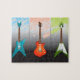 Ursnygga elektriska gitarrer i olika tre formar i livliga blått, virvlar runt orangen och grönt med grunge och splats uppe i luften. En lutning bleknar bakgrund gör egentligen detta designsken! Perfekt för någon gitarrist eller musikälskare.