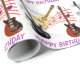 Gitarrmusiktema. Illustrerade teckningar av en akustisk gitarr och två elektriska gitarrer presenteras i olikt placerar, overtop av färgrik musik noter i orange, lilor och grått, och en buktig musikal bemannar. Grattis på födelsedagen är skriftligt längst ner i lilor. Instrumenterar, musiksymboler, och att uttrycka för födelsedag upprepas därefter som all över musikmönster. Att uttrycka kan ändras eller tas bort för att lämna totalt. Musiker, musikbandmedlemmen, vippor, gitarristen eller någon musikälskare ska är en perfekt match för denna design.