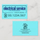 I ett elektriskt blått hölje sitter en rektangulär ram högst upp. Ram har två mörk blått slagord för att du ska kunna publicera dina tjänster. Nära ett avskärningsavsnitt i hörnet ljuger ditt prestigefyllda namn. Ändra textanmärkningarna till dessa slagord till kostym för dina egna tjänstebehov. Nära kortets bas finns en logotyp för strömkontakt som du kan använda vid sidan av kontaktinformationen.