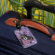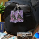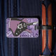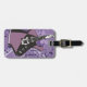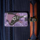 Spela lite musik. Denna konstruktion är av en elgitarr som tittar fantastisk. Den ställs mot en musikalisk lila bakgrund som ser coola ut. Du kan bara höra musiken från gitarren. Den elektriska gitarren ser underbar ut på bagagetaggen. Perfekt för dig själv eller som gåva