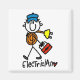 En elektriker i stick figur med blått lock har en trådkyl och en verktygslåda för grundelaryrket T-shirts, mugg, hookar, kort, klistermärken, nyckelkedjor, tote bags och andra elektriska kläder och presenter.