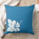 En vit silhuett av en hibiscus blomma är högdagern på den djärva blåbär färgaden dekorativ kudde.