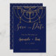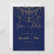 Elektriskt blåtexturerat traditionellt mönster Bröllop spara datum . Guld Traditionell utformning på en blå texturerad bakgrund gör Bröllop spara datum ett underbart första intryck. Skicka ut den här eleganten för snyggt spara datumkorten till familj och vänner för att tillkännage den stora dagen. Anpassa den genom att ändra namn för brud & groom och datum för bröllop. Om du vill ha fler anpassningar kan du kontakta mig på mypaperlove2021@gmail.com