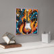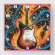 Elektriskt gitarr omgivet av vibrerande flammor fyrkantig klocka
