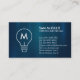 Affärskortet för elektriskt entreprenör i Monogram har en glödlampa över ett faux blue metallic struktur . Perfekt för el, el, elentreprenör, el, entreprenör, handyman, reparation av hus, reparation av hem.