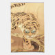 En "Minhwa" representerar koreansk folklore som skapats av okända konstnärer under århundraden. Tigern är en figur som är associerad med den koreanska kulturen och ett fult eller missbildat djur kan representera dumma eller korrumperade aristokrater enligt legenden. Den här vintagen visar en strimlad minhwa-tiger vid en ström.
