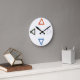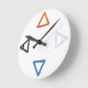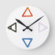A lovely round clock with artistic renditions of alchemical symbols of the elements water, earth, fire, and air.