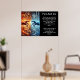 Ett elementärt omfång skildras i denna konstnärliga återgivning av två händer, brand och is. Isigen blåa hand, som snurrar med frost och självmord, representerar kyla och tydlighet. Den eländiga orangen och den röda handen, som snurrar med lågor och rök, står för värme och passion. Bakgrunden är en övertoningsblandning av mörk, mjuka toner, som framhäver kontrasten. Ljuseffekter framhäver det grundläggande temat. "Fire and Ice" är överst i djärv, modern typografi.