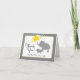 Den här söta gulten och grått-tackkort-kortet för babydusch har ett digitalt teckning från en baby-elefant med hennes mor som bär på ett gult paraply. Bakgrunden accentueras med grått-regndroppar.