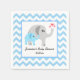 En förtjusande och modern babyduschdesign med blå och vit schevron mönster, med en mor-elefant och hennes baby.
