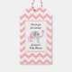En förtjusande och modern babyduschdesign med rosa och vit chevron mönster, med en mor-elefant och hennes baby.