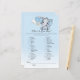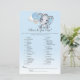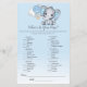 Spela What's In Din Purse vid din babydusch med dessa vackra pojke-elefanter med en i blå luftballong med vitt moln och blå och vit övertoningsbakgrund.
