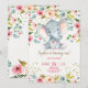 Elephant Blommigt Rustic Girl 1st Birthday Inbjudningar