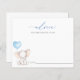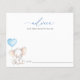 Kortet för babydusch har vattenfärgselefant med blå ballong. Kortet "Råd" uppmanar gästerna att ge råd till föräldrarna när de förbereder sig för baby.